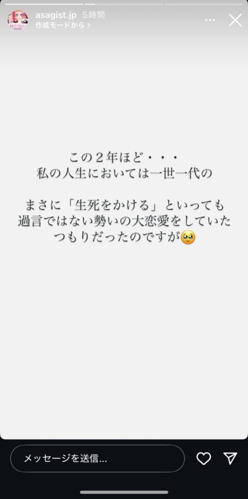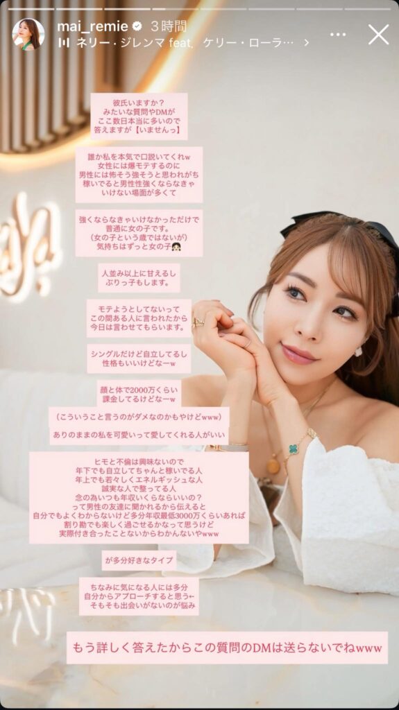 何より、最近のストーリーでも悩める乙女を励ますような内容を投稿していた。