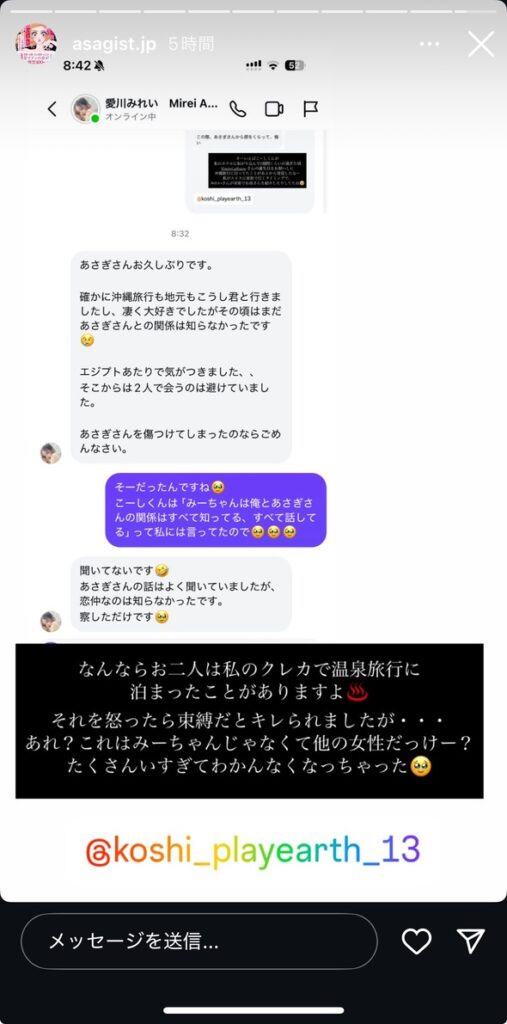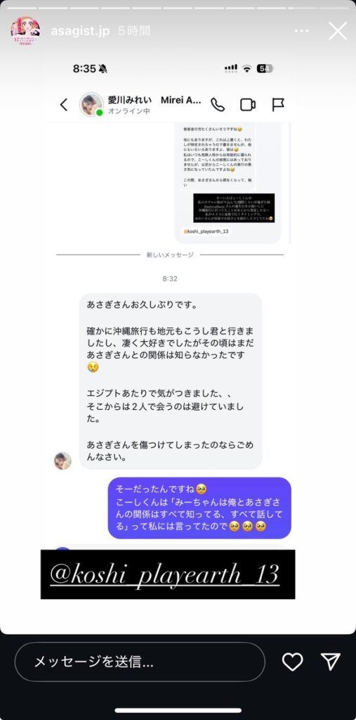 その後、マイさんはストーリーで質問回答をやっていて、「小田桐あさぎさんについてどう思いますか?」という質問に「尊敬しています。大好きです」というような回答をしていた。